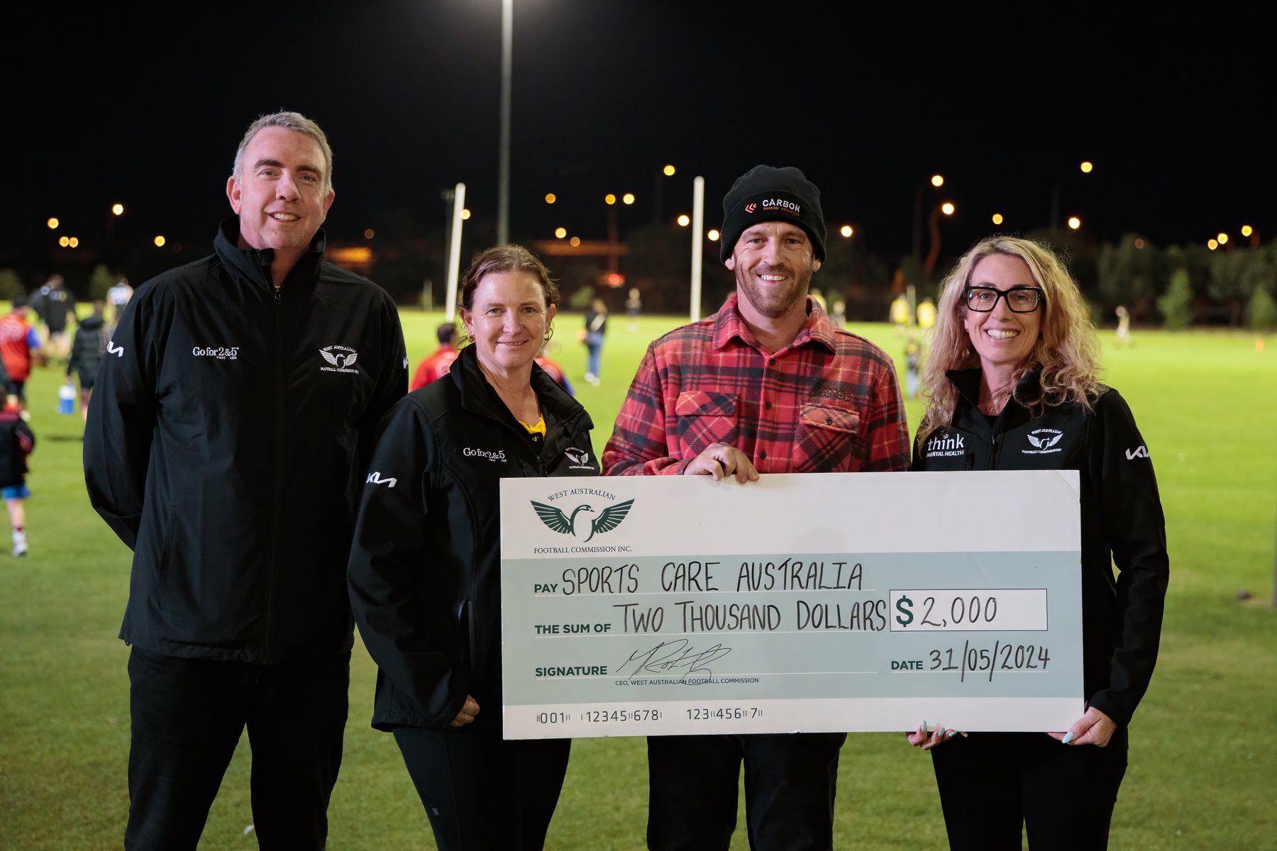 Highlighting the evening was the impressive fundraising effort, with $2000 raised for Sports Care. Chad Harding, representing Sports Care, was presented with the cheque, emphasising football’s commitment to supporting health and well-being initiatives within the community.