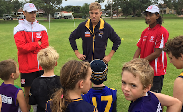 West Coast Eagles players Elliot Yeo, Jonathan Giles, Kane Lucas, Brad Sheppard, Dom Sheed and Tom Barrass and 15 South Fremantle Colts players were all on hand to share their skills and assist the juniors during the skill workshops and games and also sign autographs for their junior football fans.