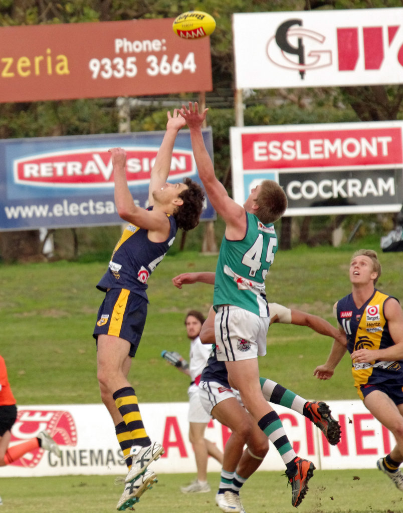 Kristin Thornton finished with 20 possessions and three goals for Peel with Jesse Hockings and Jarrod Bowman booting two goals apiece. Josh Mathers finished with 23 disposals but it was Kyle Westwood who was best afield with 22 possessions, five marks, 42 hit outs and five inside-50 entries.
