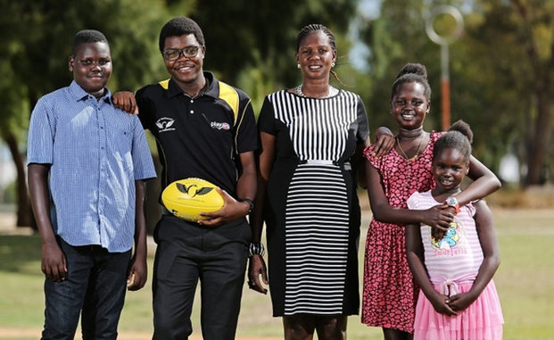 With a ball that bounces more oddly than anything he could have imagined as a young Sudanese refugee in Kenya, football – and life in Australia – is helping Peter Ajang and his family smother their tragic past.