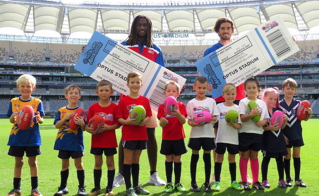 For the first time ever, each budding footballer who registers for NAB AFL Auskick from May 11 until Sunday May 27 will receive two free tickets to an upcoming Fremantle Dockers or West Coast Eagles game at Optus Stadium for the 2018 Toyota AFL Premiership Season.