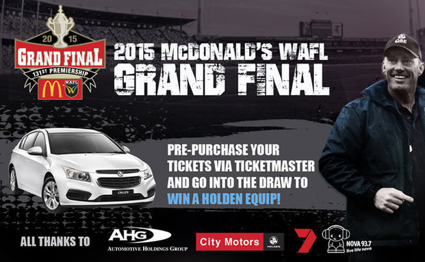 TICKETS are now on sale for the 2015 Macca’s WAFL Grand Final at Domain Stadium, with prices reduced from 2014 and a brand new Holden Cruze Equip up for grabs thanks to WAFL broadcast partner AHG for anyone who pre-purchases a ticket*.